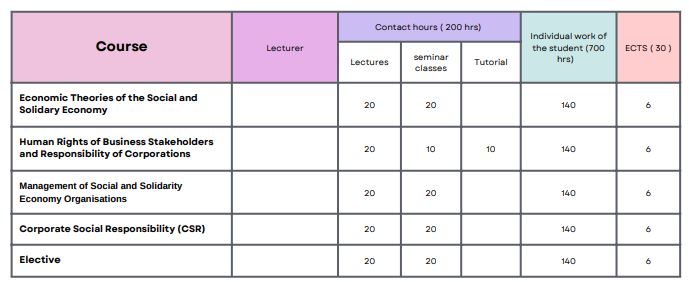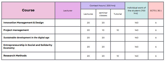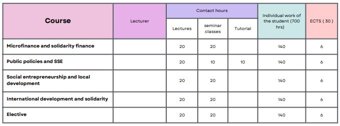 Professional perspectives of the course: The objective of this master’s degree is to train executives and practitioners in the field of the social and solidarity economy in order to prepare them for positions in this sector, but also in public or private structures with a social and territorial dimension. In accordance with the Tunisian Reference System for Professions and Skills, professions are part of the framework of personal support, social, socio-educational and socio-cultural action, the design and implementation of public policies, regional development and employment,